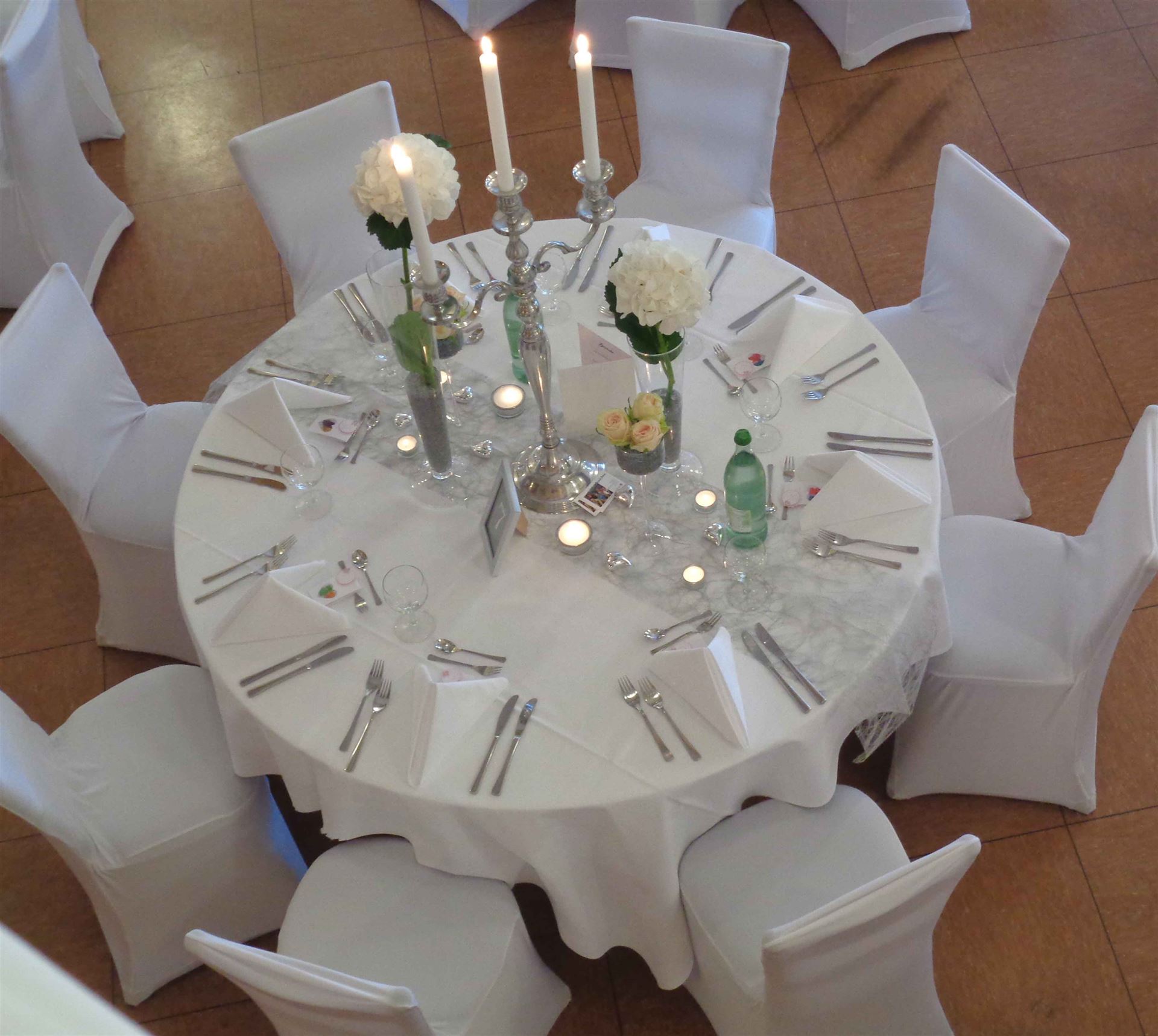 Stoffservietten. Silberleuchter. Alles da!